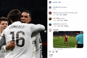 他也在赛后通过社媒晒出和贡萨洛的相拥庆祝照,并配文:“很高兴回归!”