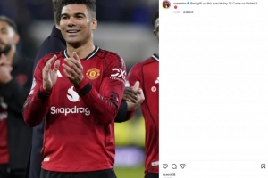 本场比赛迎来34岁生日的卡塞米罗首发出场,赛后他也在个人社媒晒出本场赛后庆祝胜利照片,配文写道:“在这个特殊日子收获最棒的礼物!曼联加油!”