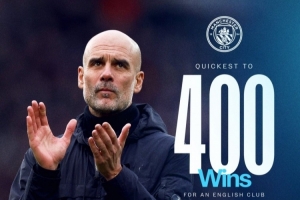 瓜帅执教英格兰俱乐部最快达成400胜,曼城官方社媒晒海报祝贺