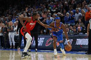 体育资讯3月5日讯 NBA常规赛,雷霆对阵尼克斯。比赛中亚历山大得分轻松上双。