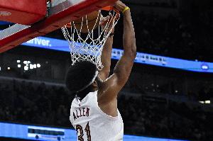 不要太舒服!贾勒特·阿伦上半场予取予求 砍下25分10板2助2帽