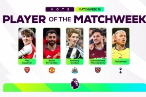 英超官方本轮最佳球员候选:道曼、B费、里沙利松在列