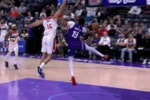 GIF-贝利快下接球迎着防守 跨步大翻身劈扣