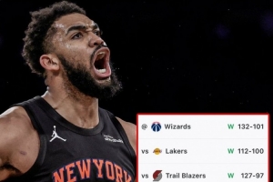 据统计,尼克斯在这波七连胜中合计净胜173分,场均净胜24.7分,创队史新纪录。