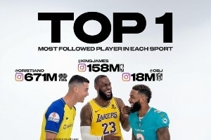 足篮橄榄球三大运动ins粉丝排行前五球星!C罗6.7亿 老詹1.58亿